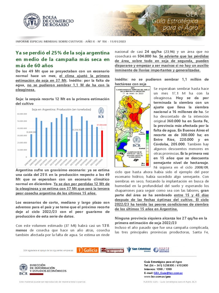 INFORME ESPECIAL MENSUAL SOBRE CULTIVOS - AÑO X - N° 156 - 11/01/2023
