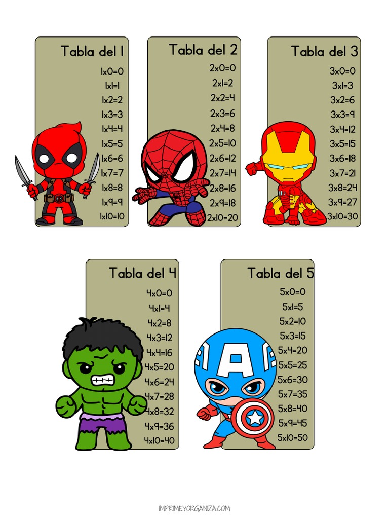 Tabla del 4 Tabla del 5