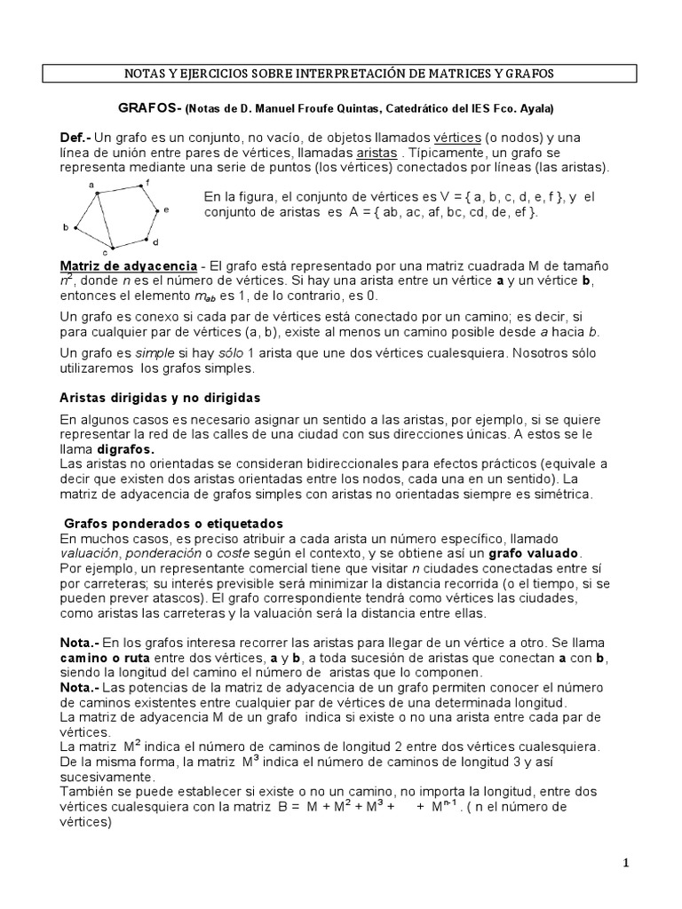 GRAFOS- (Notas de D. Manuel Froufe Quintas, Catedrático del IES Fco. Ayala)