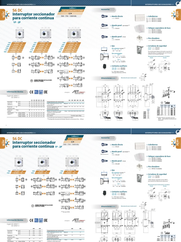 Intensidad de empleo Ie Código 500 Vdc A 400 Suitable for Use in PV Systems in accordance with Article 690 of the NEC 375 [Link]