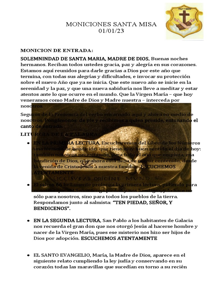 MONICIONES SANTA MISA