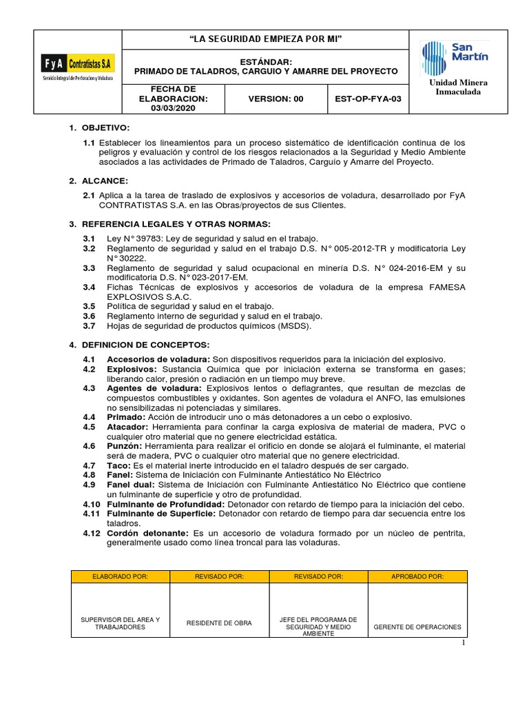 6.2 Jefe de Perforación & Voladura: Responsable de desarrollar el presente estándar,