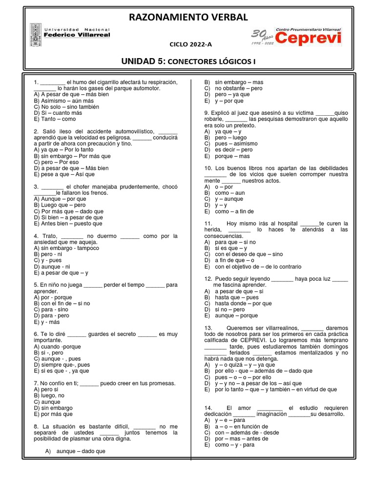 D) aunque - ni E) con el objetivo de – de lo contrario