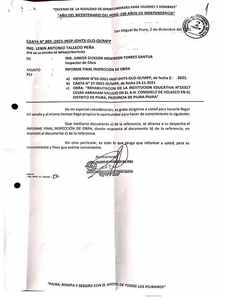 FECHA + San Miguel de Piura, 2 de diciembre de 2021.