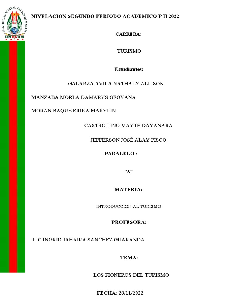palabra son los pioneros del turismo ellos son los primeros que dieron a conocer lo que es el