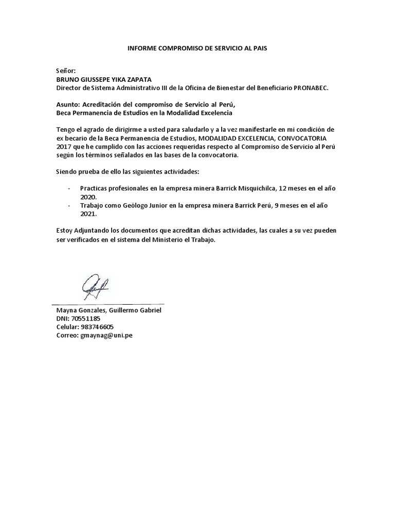 Asunto: Acreditación del compromiso de Servicio al Perú,