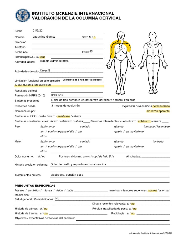 Historia previa en columna Dolor de cuello y espalda en zona torácica.