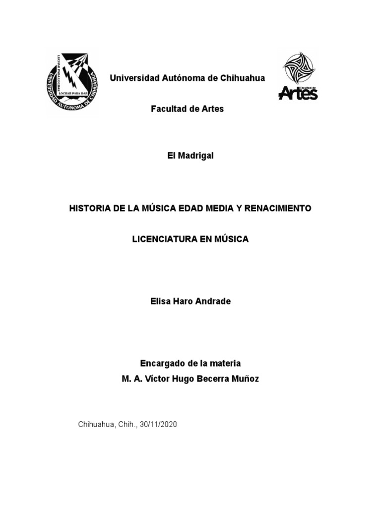 - ʺEl madrigal surgió en las primeras décadas del siglo XVI, una pieza polifónica con