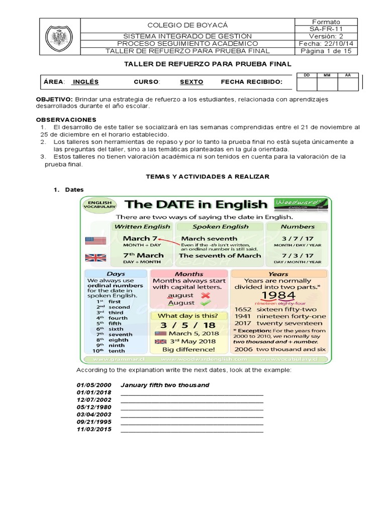 TALLER DE REFUERZO PARA PRUEBA FINAL Página 1 de 15