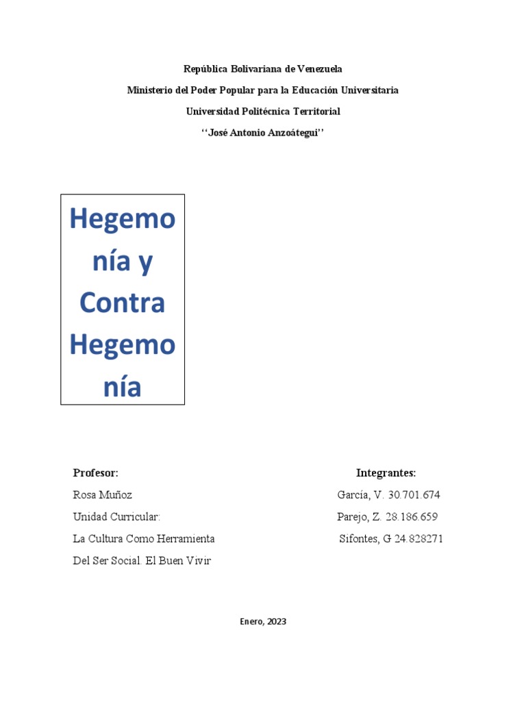 La Hegemonía y la Contra Hegemonía Cultural de la resistencia a la