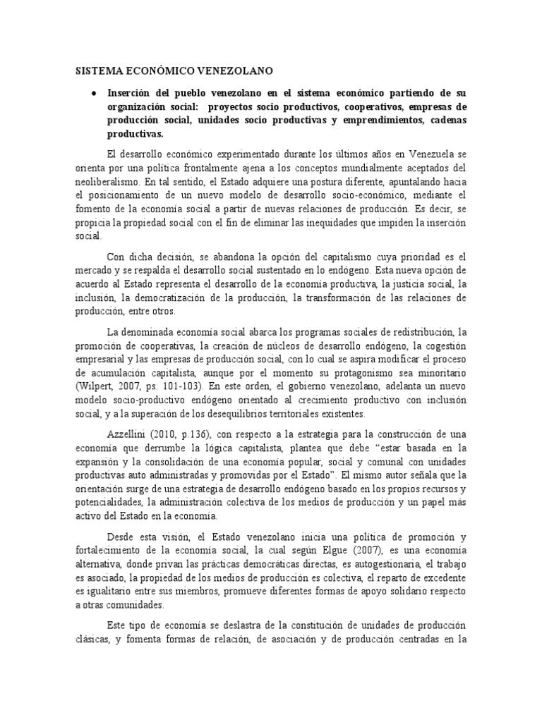 Inserción del pueblo venezolano en el sistema económico partiendo de su