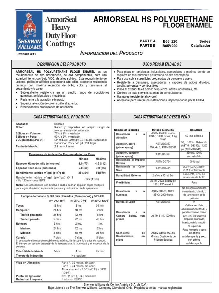 ARMORSEAL HS POLYURETHANE FLOOR ENAMEL es un Para pisos en ambientes industriales, comerciales y marinos donde se