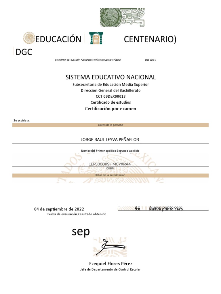 Autoridad educativa: Ezequiel Flores Pérez - Jefe de Departamento de Control