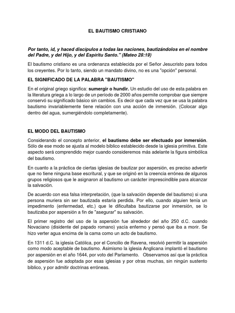 bautismo propiedades espirituales ni milagrosas. Por lo tanto, es y seguirá siendo