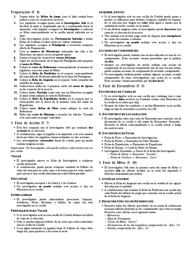 Importante: Un Investigador solo puede realizar cada acción una vez • Ficha de Rumor → Carta de Mitos de Rumor