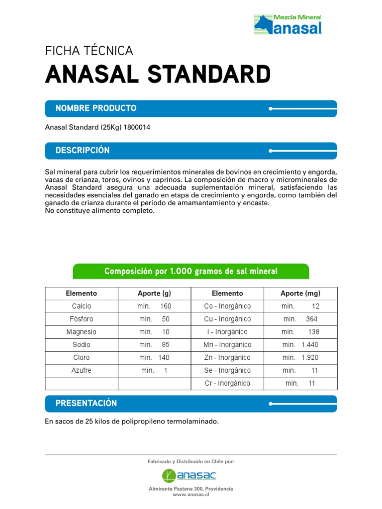 Anasal Standard asegura una adecuada suplementación mineral, satisfaciendo las