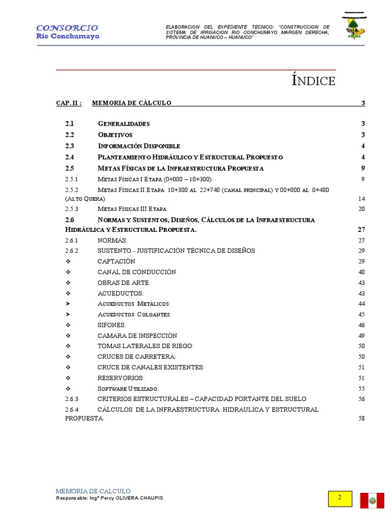 2.6.4 CÁLCULOS DE LA INFRAESTRUCTURA HIDRÁULICA Y ESTRUCTURAL