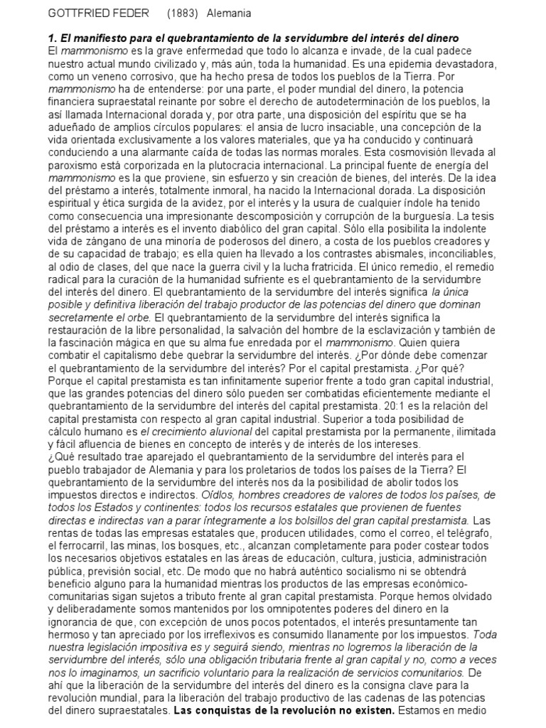 1. El manifiesto para el quebrantamiento de la servidumbre del interés del dinero