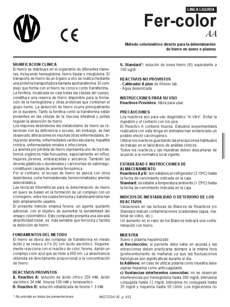 una proteína transportadora llamada apotransferrina. El com- - Calibrador A plus de Wiener lab.