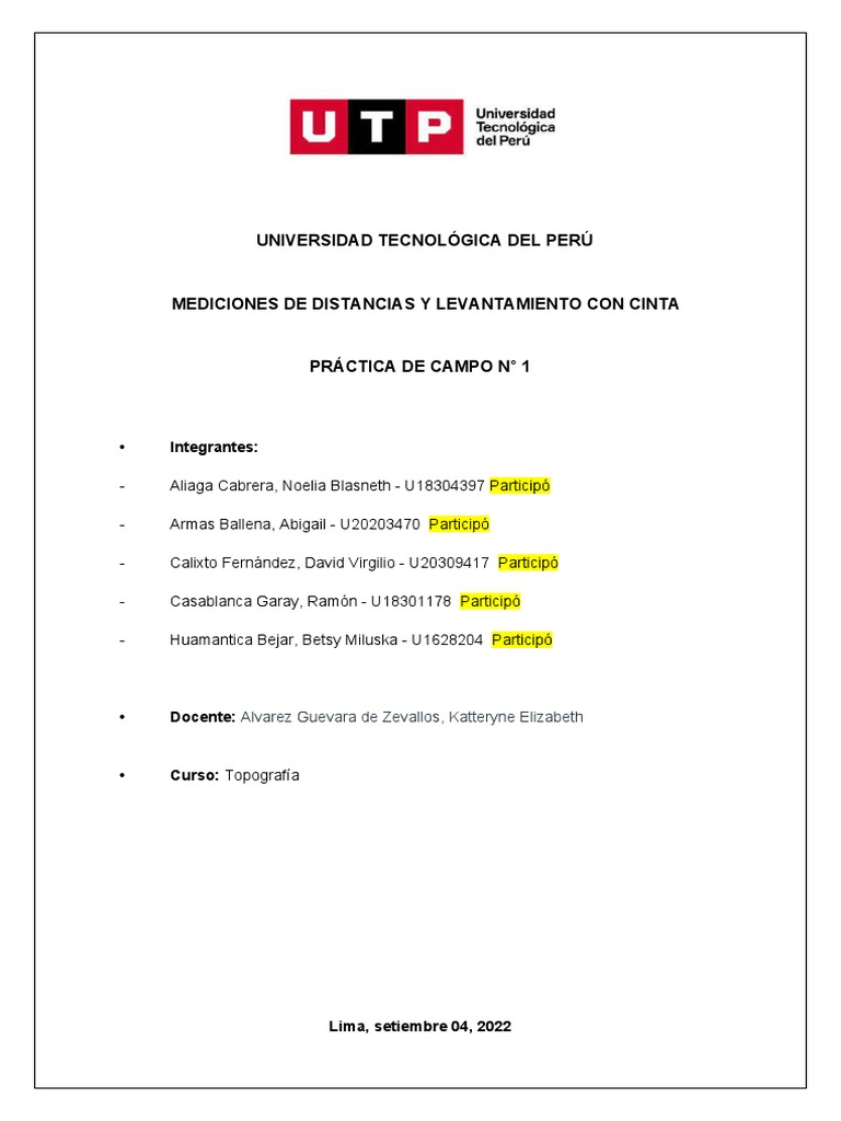 Para esta primera práctica de campo 01 del curso de topografía. De esta forma, dicho