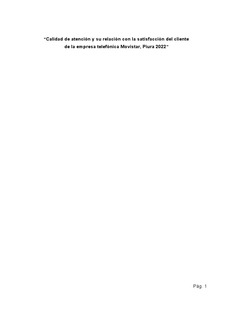 “Calidad de atención y su relación con la satisfacción del cliente en una empresa telefónica de la ciudad de Piura 2022”