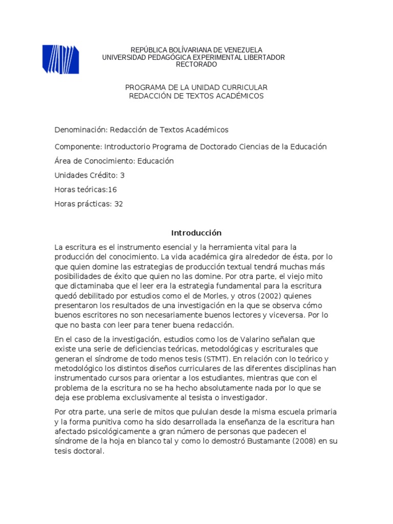 mejoramiento de la enseñanza de la redacción. Caracas: Universidad