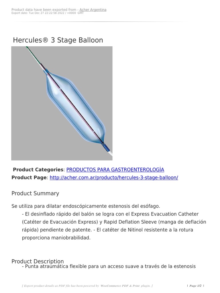 - El desinflado rápido del balón se logra con el Express Evacuation Catheter