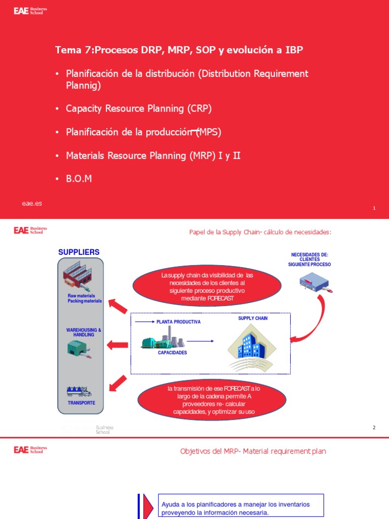 Tema 7:Procesos DRP, MRP, SOP y evolución a IBP