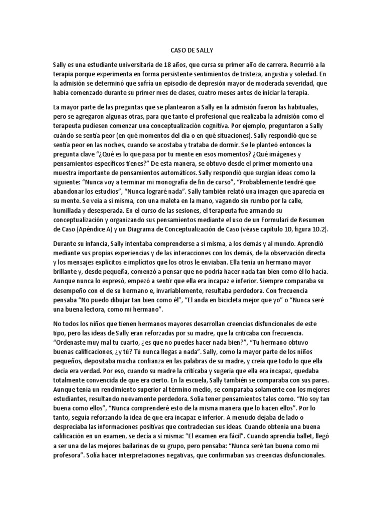terapeuta pudiesen comenzar una conceptualización cognitiva. Por ejemplo, preguntaron a Sally