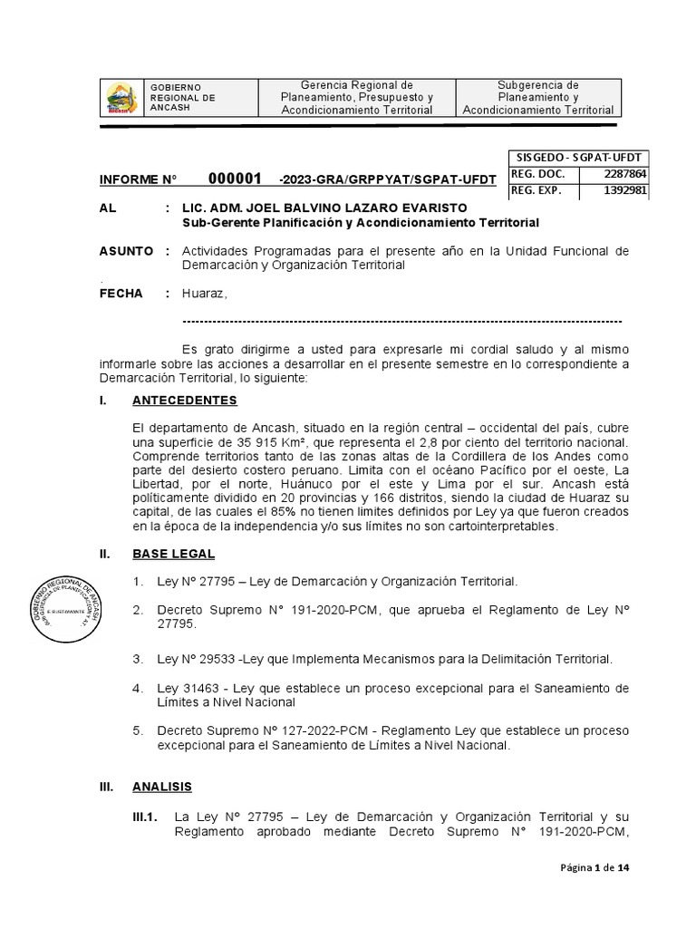 INFORME Nº 000001 -2023-GRA/GRPPYAT/SGPAT-UFDT