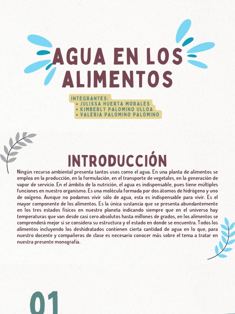 1. Ellosagua es uno de los elementos fundamentales en la vida de un alimento ya que es uno de