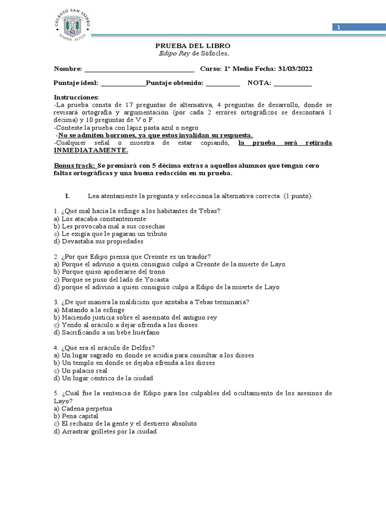 -La prueba consta de 17 preguntas de alternativa, 4 preguntas de desarrollo, donde se