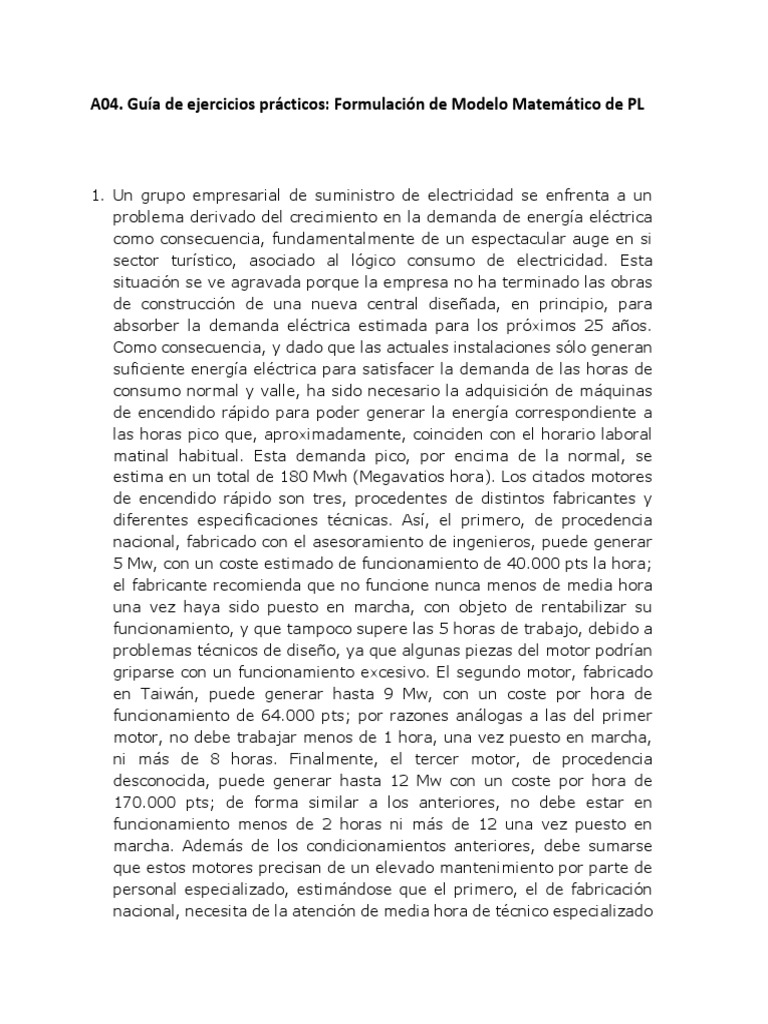 1. Un grupo empresarial de suministro de electricidad se enfrenta a un