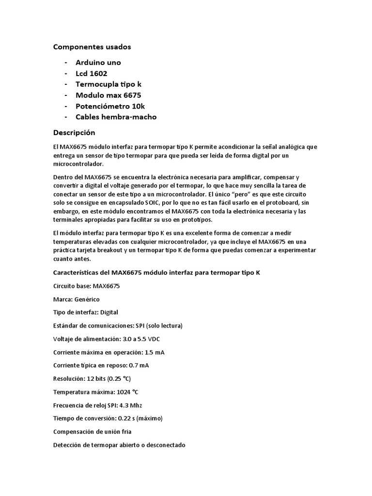 entrega un sensor de tipo termopar para que pueda ser leída de forma digital por un