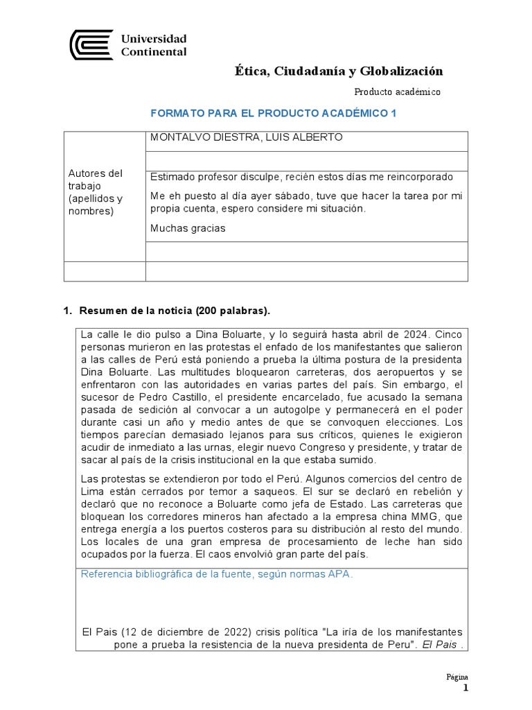 FORMATO PARA EL PRODUCTO ACADÉMICO 1