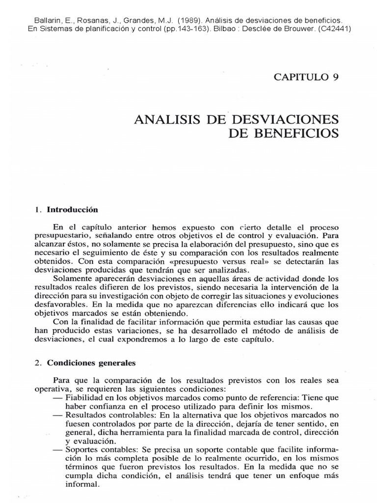 CAP. 9. ANALISIS DE DESVIACIONES DE BENEFICIOS 161
