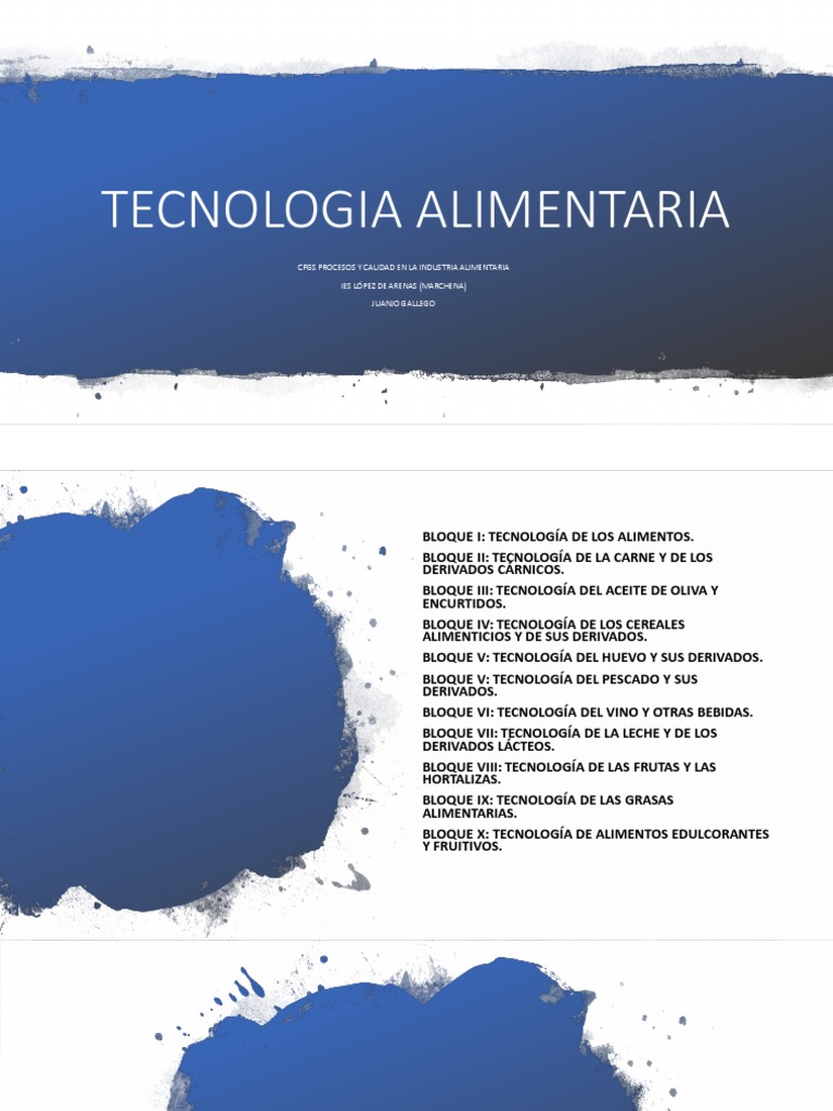 BLOQUE I: TECNOLOGÍA DE LOS ALIMENTOS.