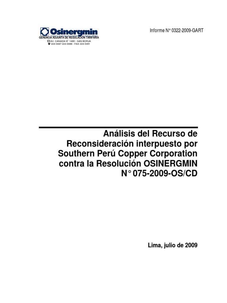 contra la Resolución OSINERGMIN N° 075-2009-OS/CD Página 1 de 16