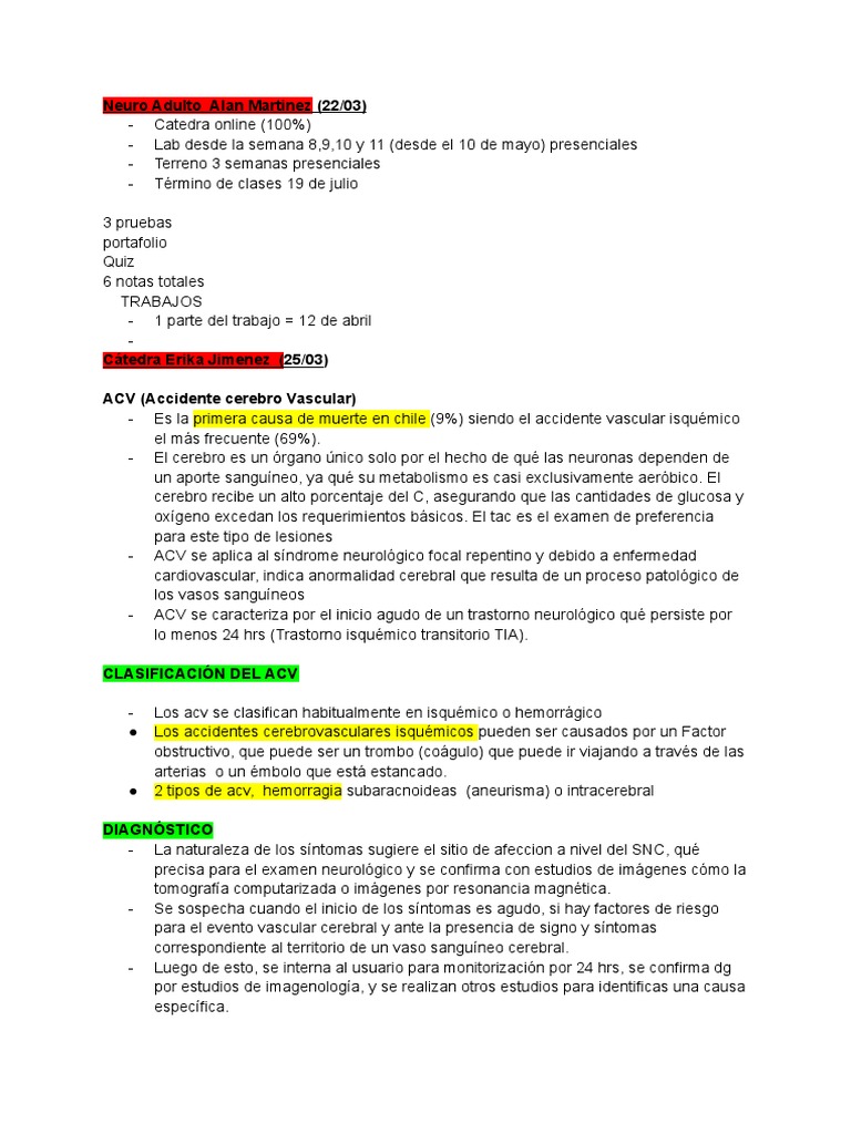 - ACV se aplica al síndrome neurológico focal repentino y debido a enfermedad