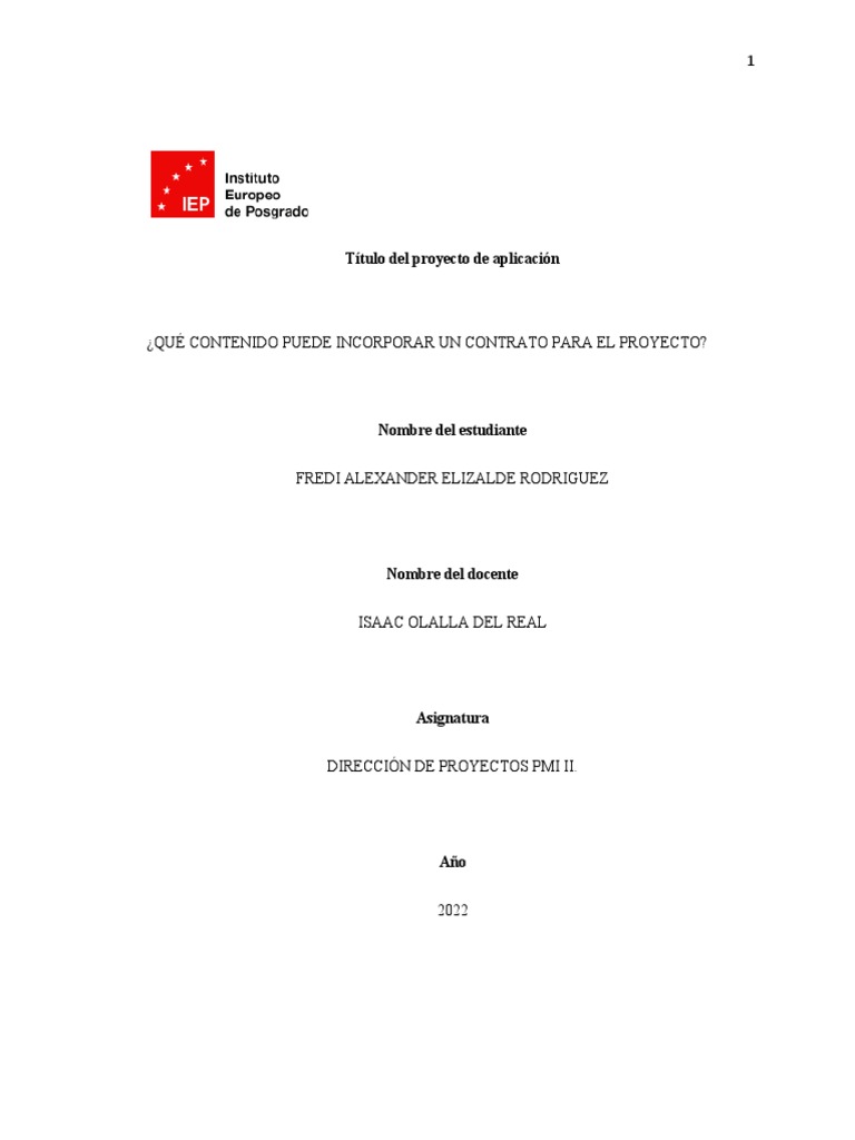 del contrato. 3. Asegurarse que el contrato cuente con los requisitos de gestión del proyecto.