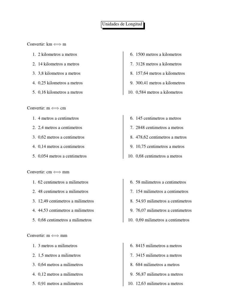 1. 62 centimetros a milimetros 6. 58 milimetros a centimetros