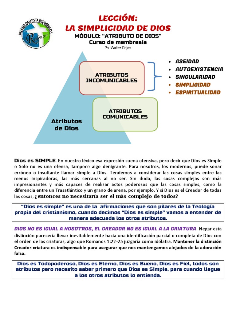 LA SIMPLICIDAD DE DIOS ES UN ATRIBUTO INCOMUNICABLE, asi como Él es