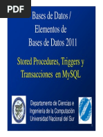 Un procedimiento almacenado es una rutina (procedimiento o funcin) que es almacenada dentro de la base de datos. Sentencias: CREATE PROCEDURE/FUNCTION ALTER PROCEDURE/FUNCTION DROP PROCEDURE/FUNCTION