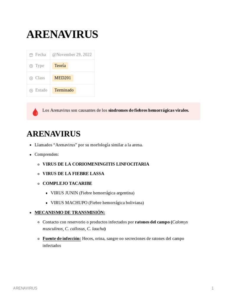 🩸 Los Arenavirus son causantes de los síndromes de fiebres hemorrágicas virales.