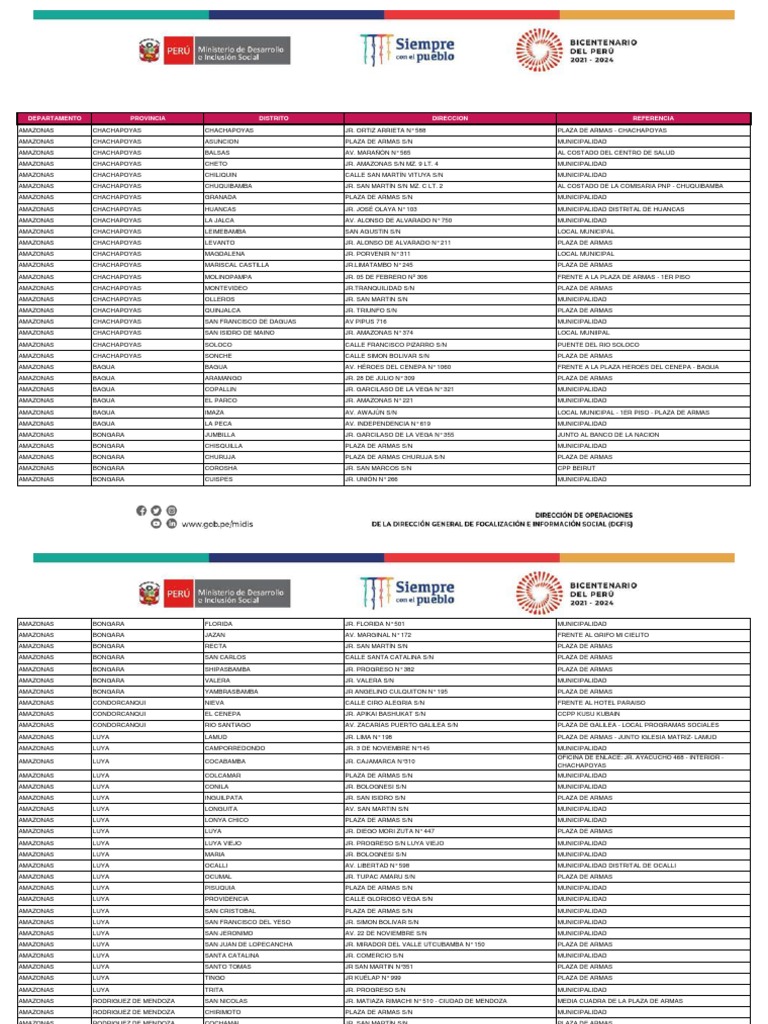 AMAZONAS CHACHAPOYAS SAN FRANCISCO DE DAGUAS AV PIPUS 716 MUNICIPALIDAD