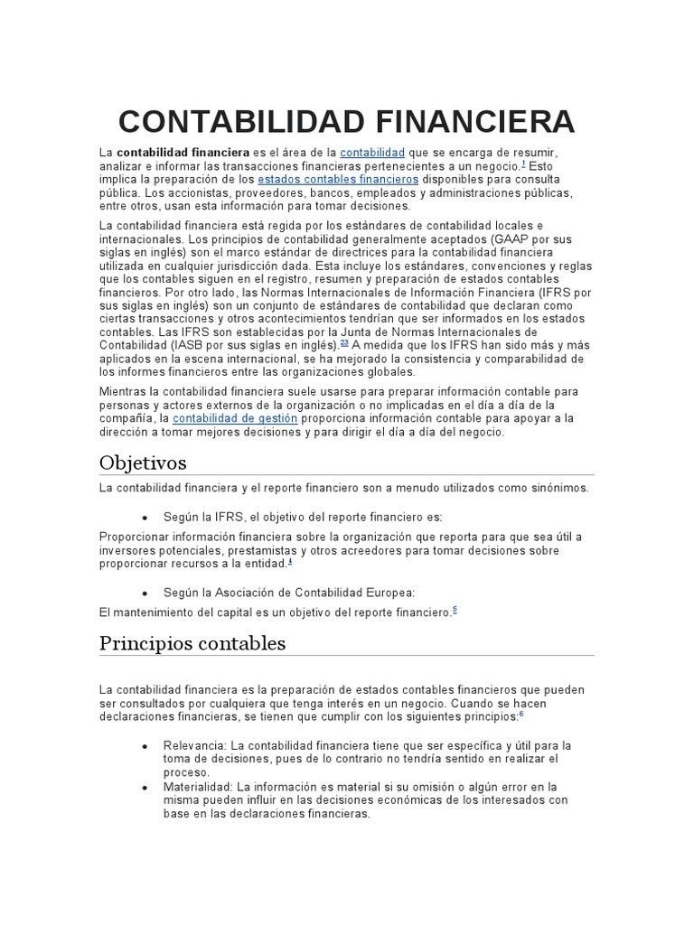 La contabilidad financiera es la preparación de estados contables financieros que pueden