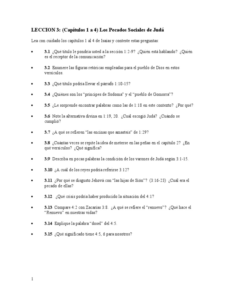 Lea con cuidado los capítulos 1 al 4 de Isaías y conteste estas preguntas: