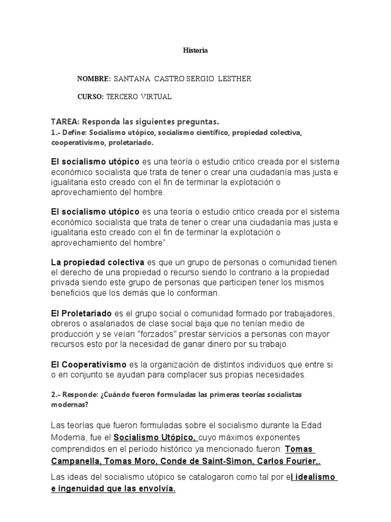 1.- Define: Socialismo utópico, socialismo científico, propiedad colectiva,