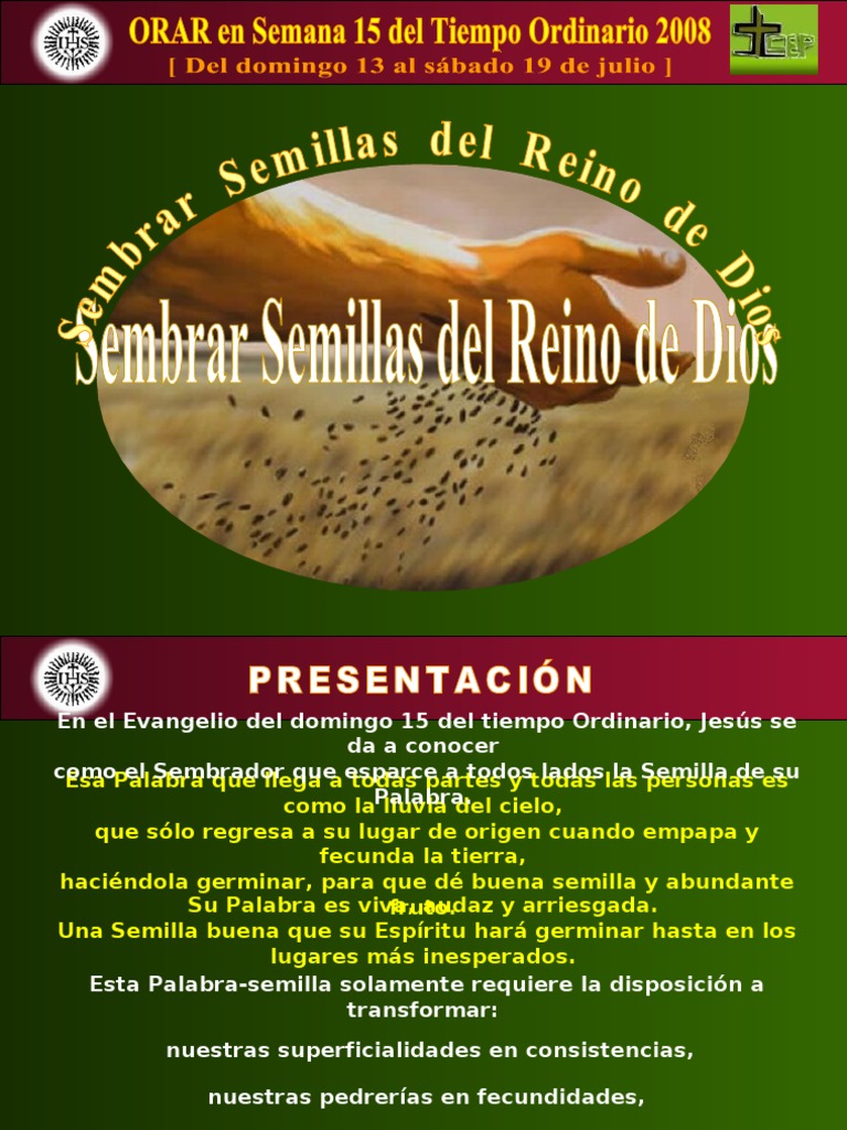 Una Semilla buena que su Espíritu hará germinar hasta en los