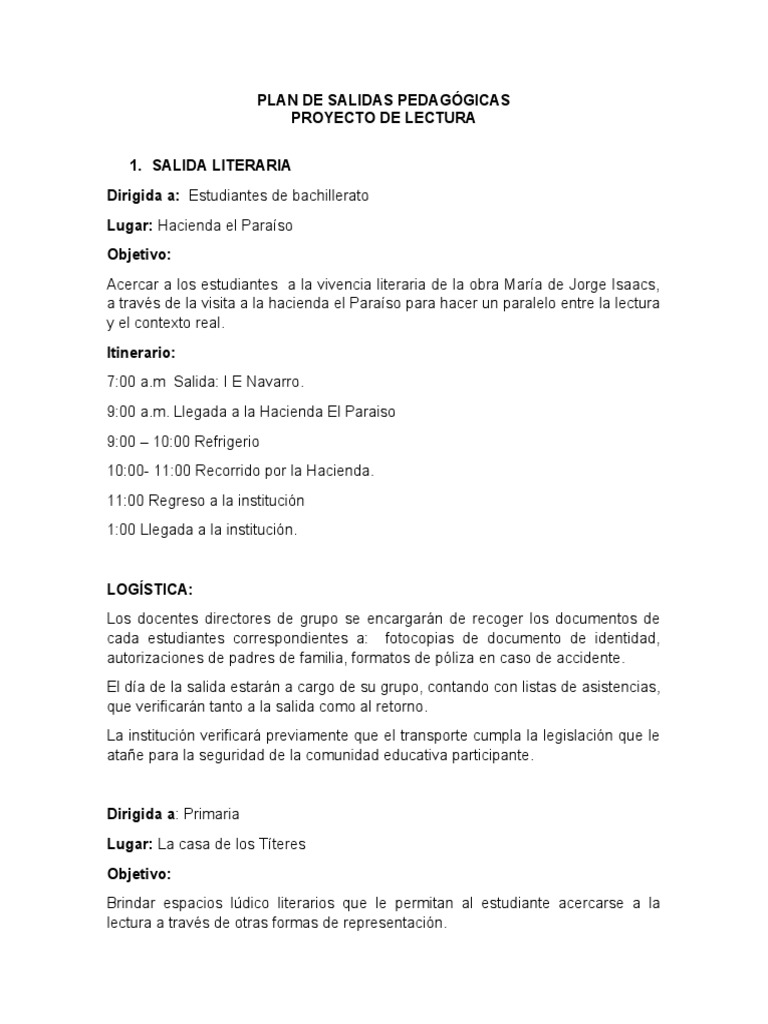 PLAN DE SALIDAS PEDAGÓGICAS